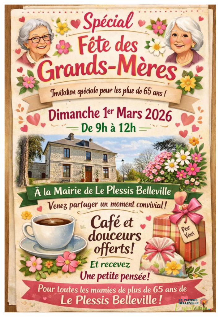 À l’occasion de leur fête, les grands-mères de la commune ayant plus de 65 ans sont conviées à la mairie ce dimanche 1er mars de 9h à 12h.